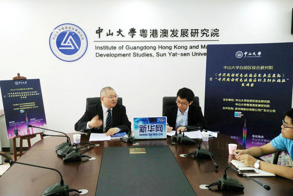 发布会结束后,李善民副校长接受了新华网专访,围绕自贸试验区改革创新过程遇到的困难、突破领域以及广东自贸试验区在粤港澳深度合作、对接“一带一路”倡议等问题回答记者提问。
