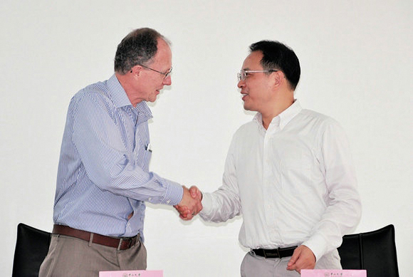 仪式上,仇荣亮院长与埃文斯·道格拉斯教授就环境科学与工程学院加入国际环境科学中心正式签约。