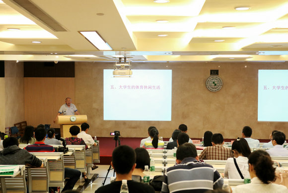 本次专题培训特邀我国著名体育社会学家、华南师范大学博士生导师卢元镇教授莅临开讲,题目为“大学体育与大学生人格”。卢教授指出在科技化的社会浪潮中,在大学生体质与健康状况滑坡的趋势下,发展大学生体育运动迫在眉睫。体育运动对于增强大学生体质,维护大学生身心健康方面功效非常显著。此外,体育运动还可以培养大学生的公民意识、责任意识,其提倡的平等、尊重、自信的道德与文化内涵有利于树立高尚人格,是高等教育中不可忽视的重要一环。卢教授年逾古稀,但在一个半小时的讲座时间里坚持站立演讲,声如洪钟,气场强大,演讲内容生动丰富,赢得了全场听众的敬佩与掌声。
