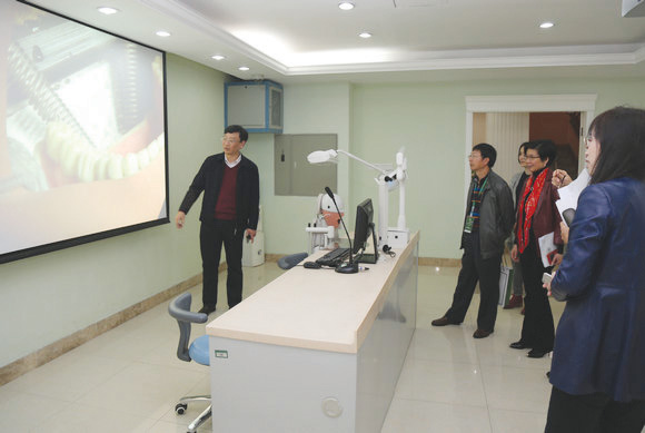 评估组专家还检查了学院自评报告的相关佐证材料和本科教学资料库,还实地考察了学院教学基地建设情况,并亲自体验教学设备。