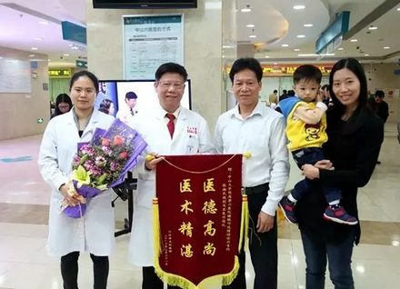 义诊现场,突然来了一对怀抱孩子的年轻父母,手拿锦旗,径直走到张湘民教授的跟前,握着教授的手连连表示感谢。原来,孩子之前因为腺样体与扁桃体肥大,导致睡眠窒息感,一憋醒就哭,人都消瘦了;加上孩子凝血有问题,很多医院都婉拒手术治疗,后来找到附属六院睡眠专科张湘民教授,他说愿意冒着风险帮孩子做手术。手术非常成功,术后孩子睡得可香了。昨天出院,今天正好是小患者2岁生日,特地送锦旗来感谢张湘民教授及其团队。