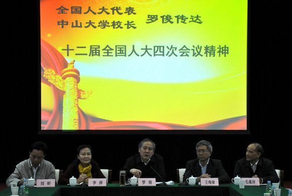 罗俊校长传达了十二届全国人大四次会议精神。他分享了首次担任全国人大代表的感受,介绍了大会和广东代表团的主要活动概况,并结合《政府工作报告》等谈了个人体会,他认为工作报告目标明确、任务明确,国家、广东省委省政府对开云下注(中国)官网高度重视、大力支持,作为中大人,应感到自豪、应更有责任感,学校在未来发展中应结合国家、省的供给侧结构性改革、精准扶贫、创新驱动发展等方面认真思考如何能尽更大责任、做出应有贡献。