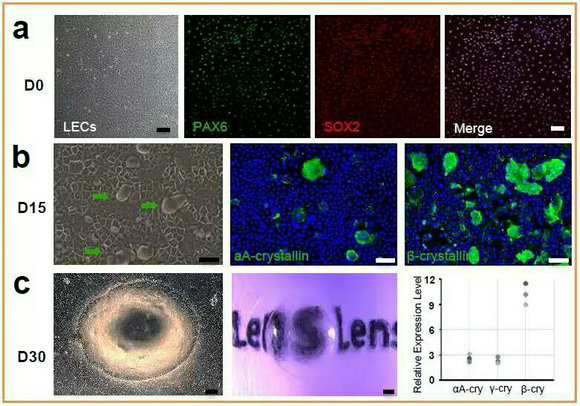 研究团队发现晶状体存在内源性上皮干细胞,并证明Pax6和Bmi1是维持其自我更新和分化能力的关键因子,发现目前常规的白内障手术囊袋破口大,损伤内源性上皮干细胞,无法再生晶状体。他们创建了一种全新的超微创白内障术式,将病变组织清除,保护利于细胞生长的基底膜和再生微环境,在新西兰兔和食蟹猴中首次成功原位长出透明晶状体。在临床试验中12名2岁以内的先天性白内障患儿接受了这种新术式,术后再生出功能性晶状体,后发障发生率降低20倍以上,临床试验证实了新术式在治疗先天性白内障中的安全性和有效性。该研究为白内障治疗提供了全新的策略,并开辟了组织再生及干细胞临床应用的新方向。