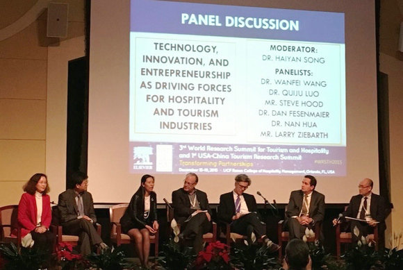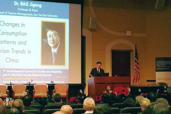 近日,第三届世界旅游与接待业研究峰会(The 3rd World Research Summit for Tourism and Hospitality)暨第一届中美旅游研究峰会(The 1st USA-China Tourism Research Summit)在美国中佛罗里达大学罗森酒店管理学院(Rosen College of Hospitality Management, UCF)召开。来自53个国家和地区的252名代表参加了此次峰会。我校旅游学院院长保继刚、副院长罗秋菊、讲师梁增贤和博士研究生朱丹等一行4人参会;旅游学院部分旅美、旅欧校友也参加了此次峰会,包括任教于伊利诺伊大学香槟分校(University of Illinois at Urbana-Champaign)的助理教授黄琢玮、佛罗里达海岸大学(Florida Gulf Coast University)的助理教授江澜,以及目前就读于荷兰乌特勒支大学的张倩帆、美国佛罗里达大学的刘冰洁等。