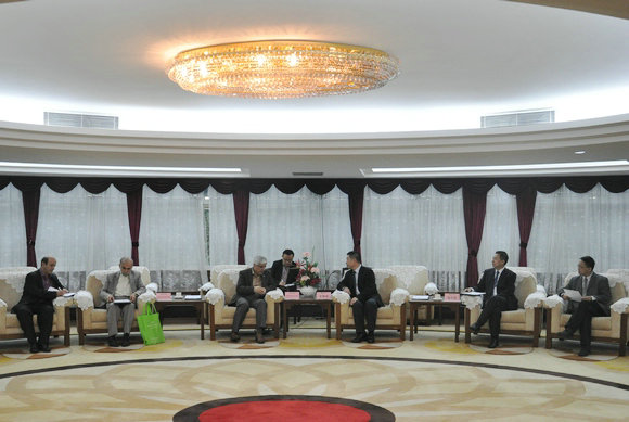 余敏斌副校长(右三)在中山楼贵宾厅会见Hooshang Talebi校长(左三)一行