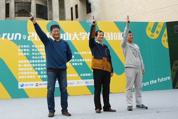 范振国主任(右)、刘泽扬副书记(左)、孔晓慧副秘书长(中)为10km竞速组开跑鸣枪