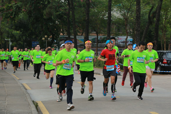 13点30分,由学生处处长莫华、体育部党总支书记凌春贤、校工会副主席彭志刚鸣枪,2km体验组和双人组同时开跑。14点15分,体验组和双人组结束赛程,体育部主任范振国、校团委副书记刘泽扬、校友总会副秘书长孔晓慧鸣枪,众人瞩目的10km竞速组开跑。本次马拉松的起点设在永芳堂铜像广场,参赛者们一路经过怀士堂、英东体育馆、园东路、大北门,再沿逸仙路,经政治与公共管理学院回到终点永芳堂铜像广场。据赛后统计数据显示,1100名10km参赛者中,除了两位因身体原因没有完赛以外,其余参赛者全部顺利跑完全程。