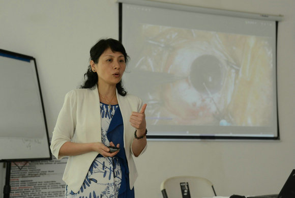 医疗队专家组郑丹莹教授为当地的眼科医护人员培训