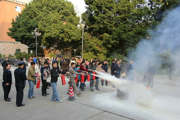 各消防安全管理人员进行消防灭火实操演练