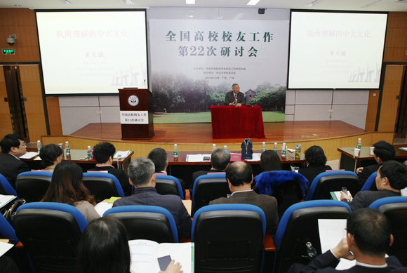 随后进入大会第二阶段的专题报告环节,李萍做了《大学与校友》的专题报告;我校国家级教学名师、校友工作志愿者、中国语言文学系教授黄天骥做了《我所理解的中大文化》的报告。该环节由我校校友总会秘书长李汉荣主持。