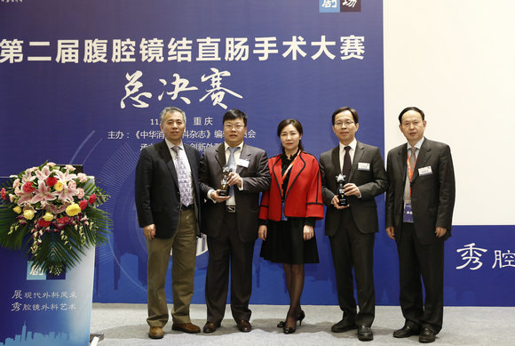 我校肿瘤医院丁培荣副主任医师(右二)获第二届腹腔镜结直肠手术大赛全国总冠军