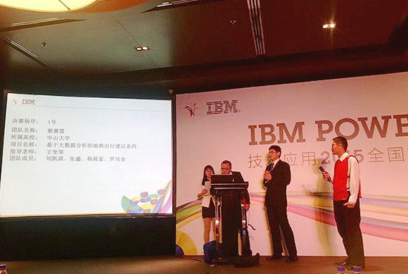 我校公共实验教学中心IBM平台学生的“猴赛雷”团队在“IBM Power技术应用2015全国校园大赛”中进行展示,获得冠军