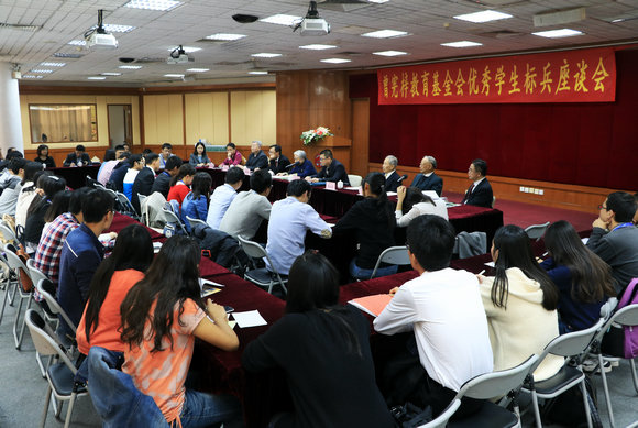 颁奖大会当日,韦钰院士、陈滋英先生,曾智明、曾智雄等还在我校与来自38所高校的优秀学生代表举行了座谈会。座谈会上,学生代表汇报了四年大学学习、生活情况,以及日前参访梅州、金利来公司的收获和体会。曾智明充分肯定同学们的学习热情及努力成果,并勉励大家在未来的生活和工作中继续努力、奋发向上,不忘父母的养育之恩,不负学校的栽培,为社会的和谐、为祖国的强盛积极贡献。