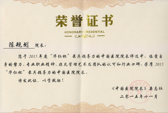 附属第三医院陈规划院长荣获“华仁杯”2015最具领导力的中国医院院长