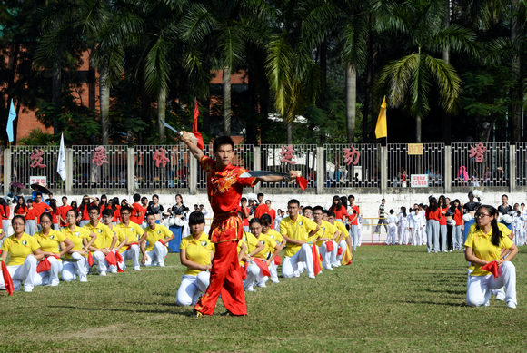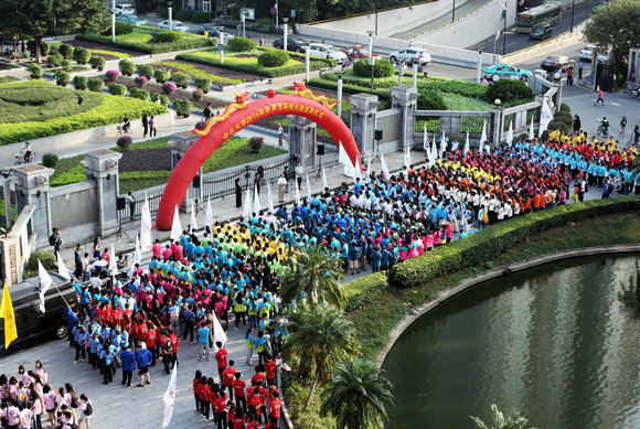 一年一度的体育节是全面检阅我校体育教育和全民健身运动新成果,集中展现中大师生拼搏进取、开拓创新精神风貌的一次盛会。上午,全校35个二级工会的教职工和学生共计一千余人,从南校区北门开始环校长跑活动,沿逸仙路、孙中山铜像、小礼堂、康乐路,跑向终点三号篮球场并随后参加了体育节的开幕式。