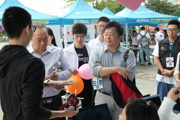 本次嘉年华参展主体包括自主报名的个性创意团队及学院工程实训中表现突出的团队,合计68支学生团队、269名同学参与展示。现场共分为“迷宫竞速”、自主创新、移动机器人、智能无人船、智能飞行器等五大展区。有立体视觉之循迹、避障、三维重建系统,有表白小车“爱菲尔”、外卖飞机“天狗一号”,有跨越时空的互动平台,有贴心寻找物品的智能管家,有移动打印店、打印隧道,有实时物体跟踪系统等60余份作品。参展团队通过视频、PPT演示及现场实物展示、体验等方式,为观摩人员介绍、讲解各自作品的创意、运行原理、关键技术、应用前景等,并听取行业嘉宾、专业评审的建议和意见。精彩多样的科技作品展示让人眼花缭乱,赢得了现场观众的赞赏。