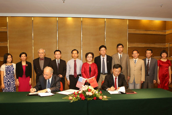 天普大学科恩伯格牙学院院长Amid I. Ismail(前排左)、光华口腔医学院常务副院长程斌(前排右)代表双方签署合作协议
