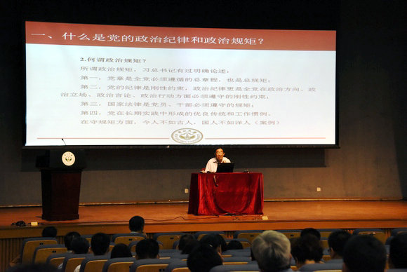 我校党史党建研究所所长、马克思主义学院郭文亮教授作题为《严于律己:严守党的政治纪律和政治规矩,自觉做政治上的“明白人”》的“三严三实”专题辅导报告