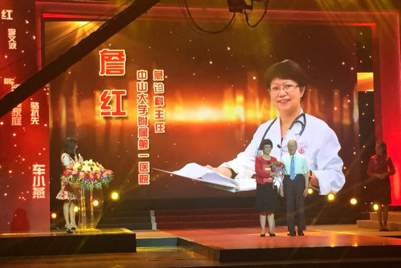 詹红作为广东医务人员的杰出代表和全省培育和践行社会主义核心价值观的重大典型当选“南粤楷模”,为全省医疗卫生系统树立了一面旗帜,诠释和传递了医疗行业正能量。中国工程院院士钟世镇亲自上台为詹红主任颁发荣誉证书。
