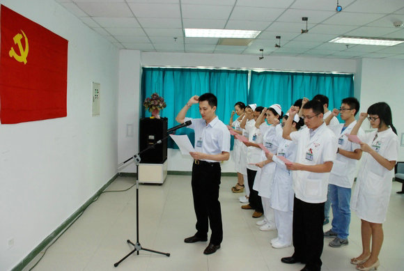 为了庆祝中国共产党建党94周年,我校附属第五医院于“七一”建党节前后开展了慰问患有重大疾病党员等活动,并于今日举行了新党员入党宣誓仪式及新党员的第一堂党课活动。