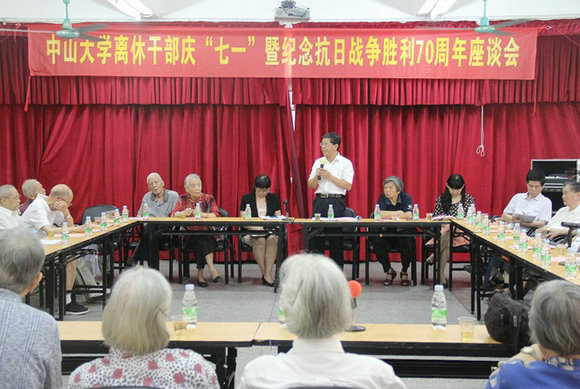 6月29日、30日, 我校分别举行南校区、北校区离休党员干部庆七一暨纪念抗日战争胜利70周年座谈会。校党委常务副书记、副校长陈春声,副校长魏明海分别出席北校区、南校区座谈会。南校区41位、北校区22位离休老党员参加座谈会。离退休工作处、南校区离退休党总支、北校区离退休党总支相关负责人参会。