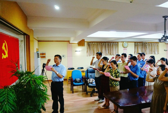 全体新党员在机关党委副书记简占亮的带领下郑重地宣誓