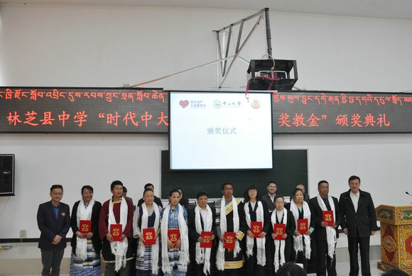 5月14日,颜光美一行抵达西藏林芝参加“时代中大奖教金”颁奖仪式,为林芝县中学20名优秀教师颁发奖教金,并参观了林芝地区第一中学“逸仙读书吧”等支教团援建项目,参加了支教团工作汇报会暨“捐资助学项目”捐赠仪式。