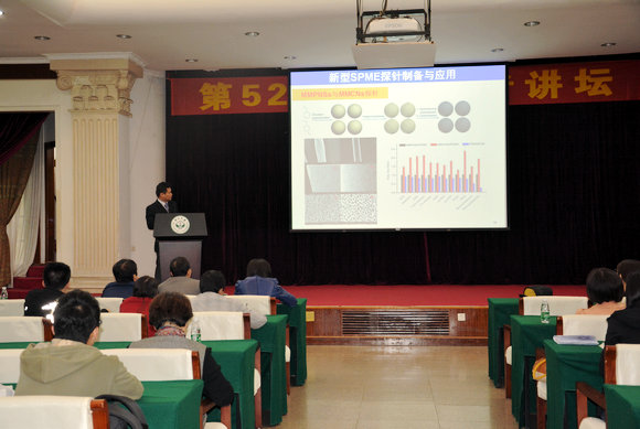 会上,欧阳钢锋报告了固相微萃取这项样品前处理技术、所带领的科研团队在固相微萃取领域开展的主要工作,如新型固相微萃取探针的制备和活体采样技术等。欧阳钢锋与大家分享了自己在科研、教学方面的心得,并建议大家合理安排科研、教学和生活,保持高效的工作状态。报告结束后,欧阳钢锋与师生进行了进一步的互动和交流。