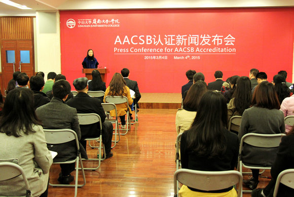 3月4日下午,我校岭南学院召开AACSB认证通过新闻发布会,宣布学院成功获得AACSB认证。目前全球仅有不到5%的商学院通过了该认证,这也是学院继AMBA 和 EQUIS 之后获得的第三个国际认证,标志着学院成为全球同时获得三皇冠认证的为数不多的商学院之一,跻身全球优秀商学院行列。