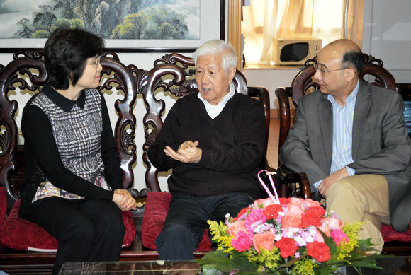 1月26日,中国科学院学部工作局李婷局长一行到我校看望苏锵、计亮年两位院士。