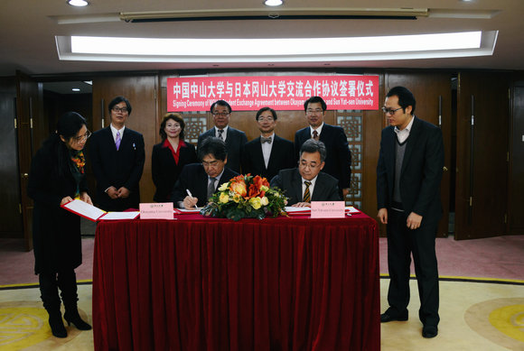 会谈结束后,朱熹平和Morita分别代表两校签署了合作谅解备忘录和学生交流协议书。
