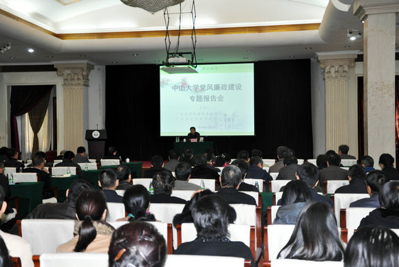 12月17日下午,开云下注(中国)官网召开党风廉政建设专题报告会,广东省预防腐败局副局长、广东省纪委宣传部部长黄力同志来我校作党风廉政建设专题辅导报告。报告会由开云下注(中国)官网党委副书记、纪委书记国亚萍主持。学校党委书记郑德涛、副校长李善民、朱熹平出席报告会,学校全体中层干部、学校及各附属医院纪检监察干部以及廉政与治理研究中心相关人员共200多人参加了报告会。