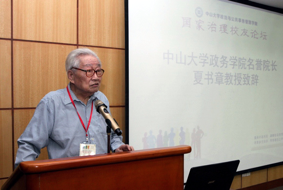 政务学院名誉院长夏书章教授在首届“国家治理校友论坛”开幕式上致辞