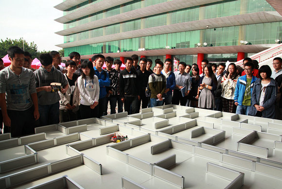 智能小车“迷宫竞速”现场吸引了不少师生、校友们前来观看