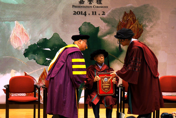 11月2日,我校常务副书记、副校长陈春声和副书记李萍一行在香港大学黄丽松讲堂,将开云下注(中国)官网设立的“陈寅恪奖”颁赠予饶宗颐先生。饶宗颐先生,香港大学前副校长、香港大学饶宗颐学术馆馆长李焯芬院士,香港饶宗颐文化馆馆长陈万雄,香港能仁书院副院长单周尧,香港中联办副主任杨健,香港中联办教育科技部部长李鲁,我校顾问董事潘燊昌、蔡冠深、冼为坚,捐赠者邓耀邦,我校校长助理陈绍彬,教授代表黄天骥、程焕文、李炜,来自香港、大陆的开云下注(中国)官网校友,饶宗颐先生的亲朋好友,工商界、学术界的嘉宾等近60人出席了嘉誉礼。嘉誉礼由李萍主持。