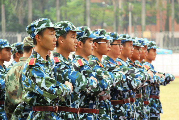 据悉,我校2014级学生军事技能训练已接近尾声,珠海校区、南校区、东校区将分别于9月10日上午、9月10日下午、9月11日上午举行军训总结大会,同学们将展示十余天的训练成果并接受检验。