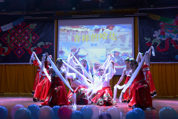 西藏民族学院学生表演舞蹈《吉祥的哈达》