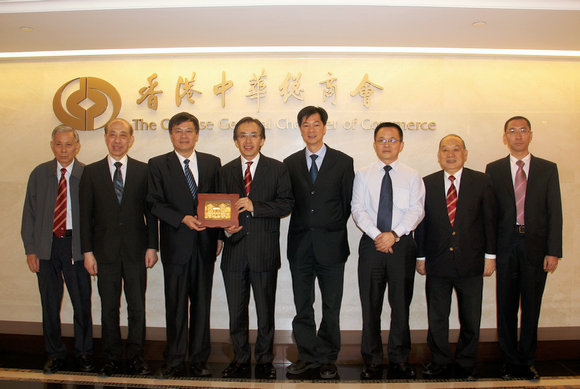 颜光美副校长一行拜访香港中华总商会,向方文雄副会长赠送纪念品