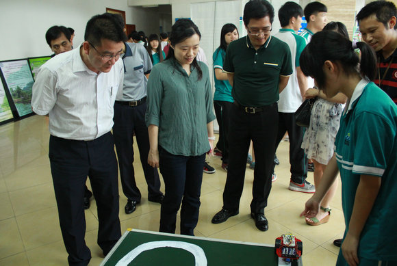 当天,政治与公共事务管理学院政能量志愿团还携手信息科学与技术学院、工学院在南村中学开展了“明灯课堂”之“科技节”主题校园活动。活动上,智能汽车模型、无人飞机模型、力学承重架以及智能机器人等学生科技作品琳琅满目。与会嘉宾与中学生们一起参观了“科技展览”,志愿者们展示并介绍了作品功能,现场气氛活跃。