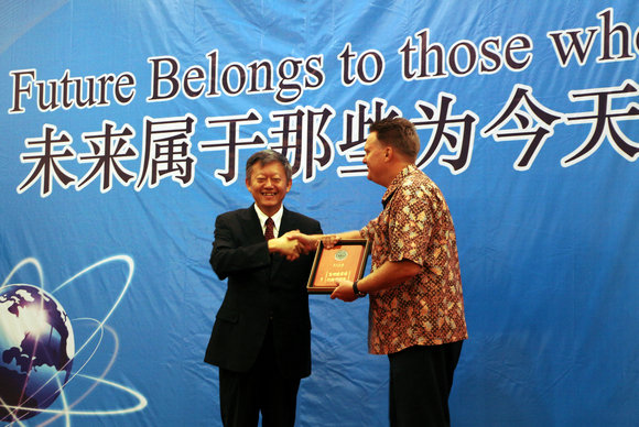 陈春声常务副书记、副校长向PATA教育培训委员会主席Peter Semone先生赠送纪念品