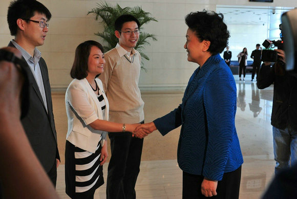 我校辅导员陈诗诗(左二)受到中央政治局委员、国务院副总理刘延东的亲切接见