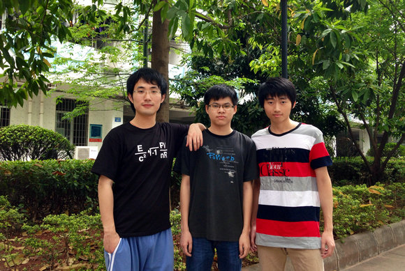 在2014年美国大学生数学建模竞赛中,我校杨子仪(右)、陈松谦(左)、杨云斐(中)三名同学的论文获特等奖提名奖(Finalist)