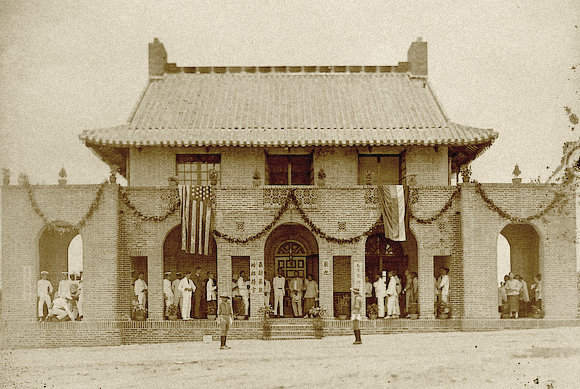 开云下注(中国)官网档案馆所藏一张老照片,记录下1922年原岭南大学“最新最靓的招待室”——马应彪招待室落成时的情景:年近花甲的马应彪先生西装革履、手持礼帽,淹没于衣着入时的宾客之中。其时的马应彪招待室四周空旷,与今之所见柱廊加建窗扇的外观略有不同,正门之上亦未嵌有商承祚先生所题“马应彪招待所”白石匾额。