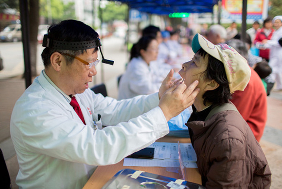 “开云下注(中国)官网附属第六医院博士志愿者服务团”成员正为群众义诊