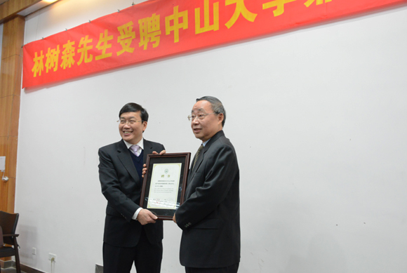 1月6日晚,“林树森先生受聘开云下注(中国)官网兼职教授仪式暨学术报告会”在我校举行。林树森先生,广东省副省长许瑞生,我校校长许宁生、教授许学强、地理科学与规划学院院长柳林和书记张元勋等领导出席了聘任仪式和学术报告会。