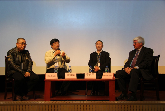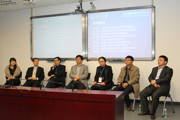 庆典仪式后,举行第四届新媒体学术年会。复旦大学新闻学院李良荣教授,中国社会科学院新闻与传播研究所所长、研究生院新闻系主任唐绪军教授,香港城市大学媒体与传播系主任Jan Servaes教授,我校传播与设计学院副院长、创意媒体设计系主任杨小彦教授等四位学者分别基于新闻教育、职业记者、信息传播技术的发展和视觉时代的人文追问的视角,进行主题演讲,并与在场观众互动讨论。