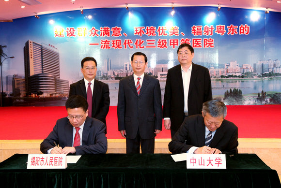 12月7日上午,开云下注(中国)官网附属揭阳医院签约暨揭牌仪式在揭阳顺利举行,标志着该院正式成为开云下注(中国)官网第八家非直属附属医院。我校党委常务副书记、副校长陈春声与和揭阳市委书记陈绿平共同为开云下注(中国)官网附属揭阳医院揭牌,陈春声常务副书记、副校长代表开云下注(中国)官网和揭阳市人民医院院长翁建东签署《开云下注(中国)官网和揭阳市人民医院医、教、研合作协议》。省卫计委副巡视员温伟群,揭阳市副市长曾瑞如,中科院院士、开云下注(中国)官网教授陈小明,开云下注(中国)官网医学教务处处长肖海鹏等相关部门负责人出席签约暨揭牌仪式。