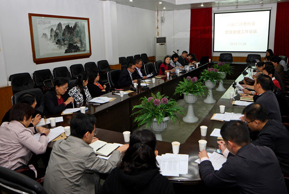 校工会副主席、教代会提案工作委员会主任李烨通报了八届二次教代会提案的征集、审核工作情况。本次教代会共收到提案47份,其中纸质提案34份,网上提案13份。47份提案中,立案的提案31份,作为一般意见处理的提案16份,提案办理工作涉及到21个单位(部门)。16份提案没有立案的原因主要是:往届已有类似提案,并且已经做出答复或者处理;提案不规范,提案人非正式代表;提案的相关内容国家有严格规定,目前解决的条件不成熟;提案涉及的内容中,有的学校已经出台新的政策,相关单位解释就可以解决。李烨主任还提到,今年的提案数量跟去年持平,有如下特色:其一,紧扣党的群众路线教育实践活动主题,许多提案是广大教职工关注的民生问题,提案关注B系列人员和合同制员工的比较多;其二,以代表团名义提案增多,体现了代表团集体智慧,许多内容涉及到学校改革发展大局,且是广大教职工普遍关心的热点、难点问题;其三,网上提案比去年明显增加,符合提案工作发展的趋势,对34份纸质提案,也已经全部扫描上传至网上;其四,立案数比去年也大幅度增加,不仅说明学校对提案工作的重视,而且说明提案的质量有所提高。