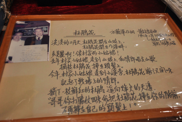台湾收藏家许伯夷先生捐赠的黄友棣先生手写的著名爱国歌曲《杜鹃花》