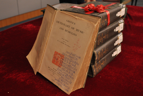 《格罗夫音乐与音乐家大辞典》(以下简称《音乐大辞典》)全套五册,静静地躺在厅中桌子上,深绿色的封面,金漆书名已褪色,内页泛黄,却页页平整无损,品相极高。谁人能想见这套书经历了怎样的坎坷?
